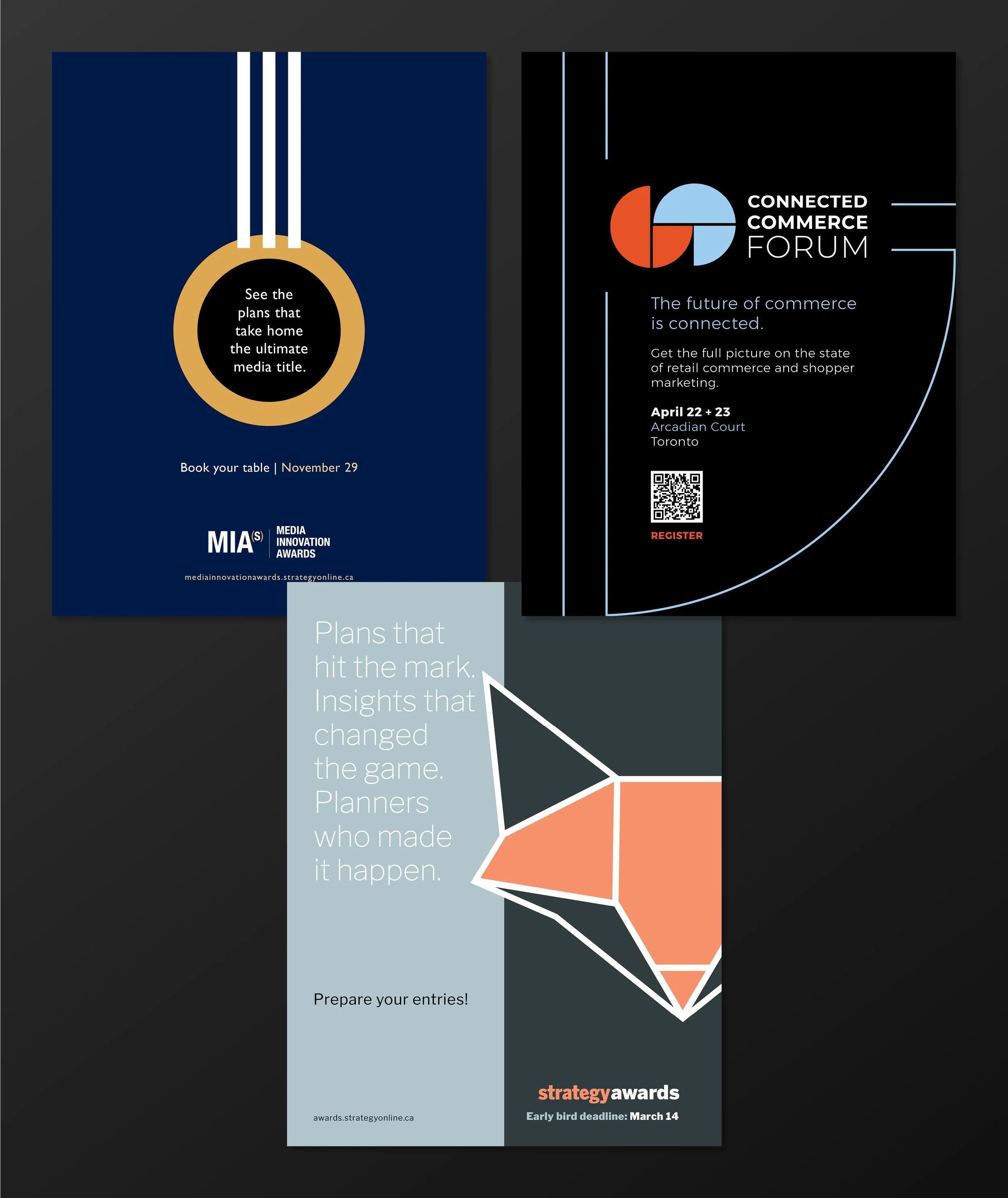 Print Ads for strategy Magazine. Layout by Mike Maxam. Art Direction by Tim Davin.